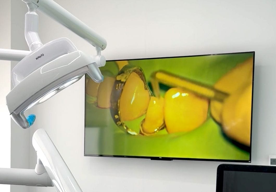 マイクロスコープで見る世界は前のモニターで一緒に確認が可能です。大きく拡大された写真や動画を元に状態や治療の説明をいたします。