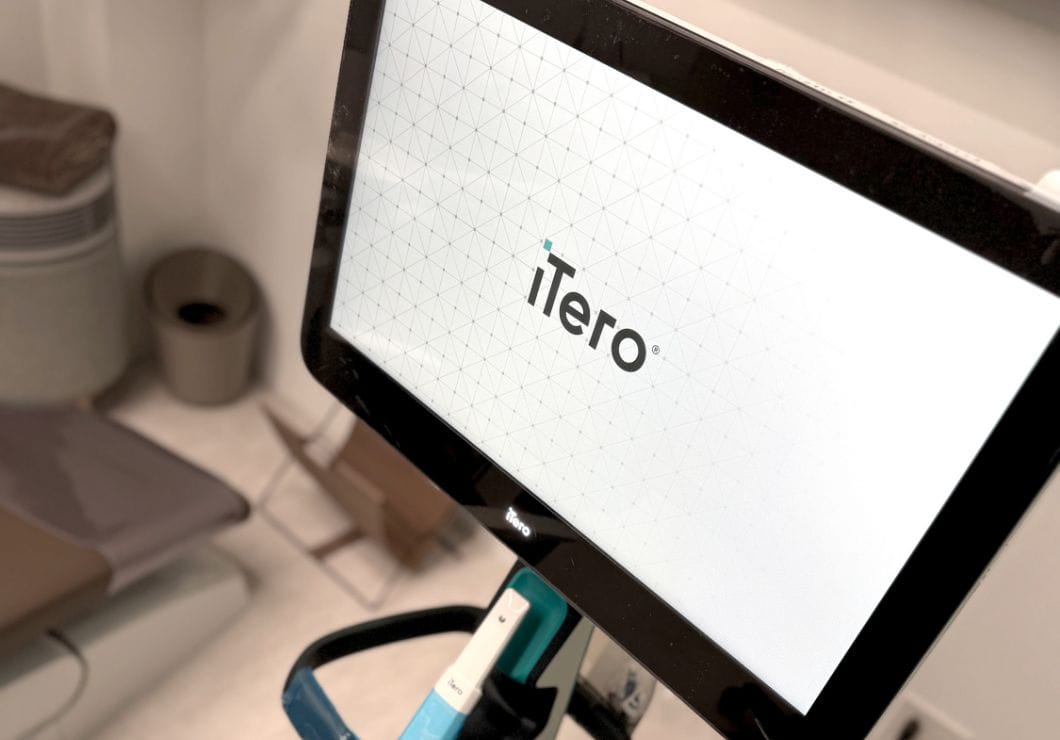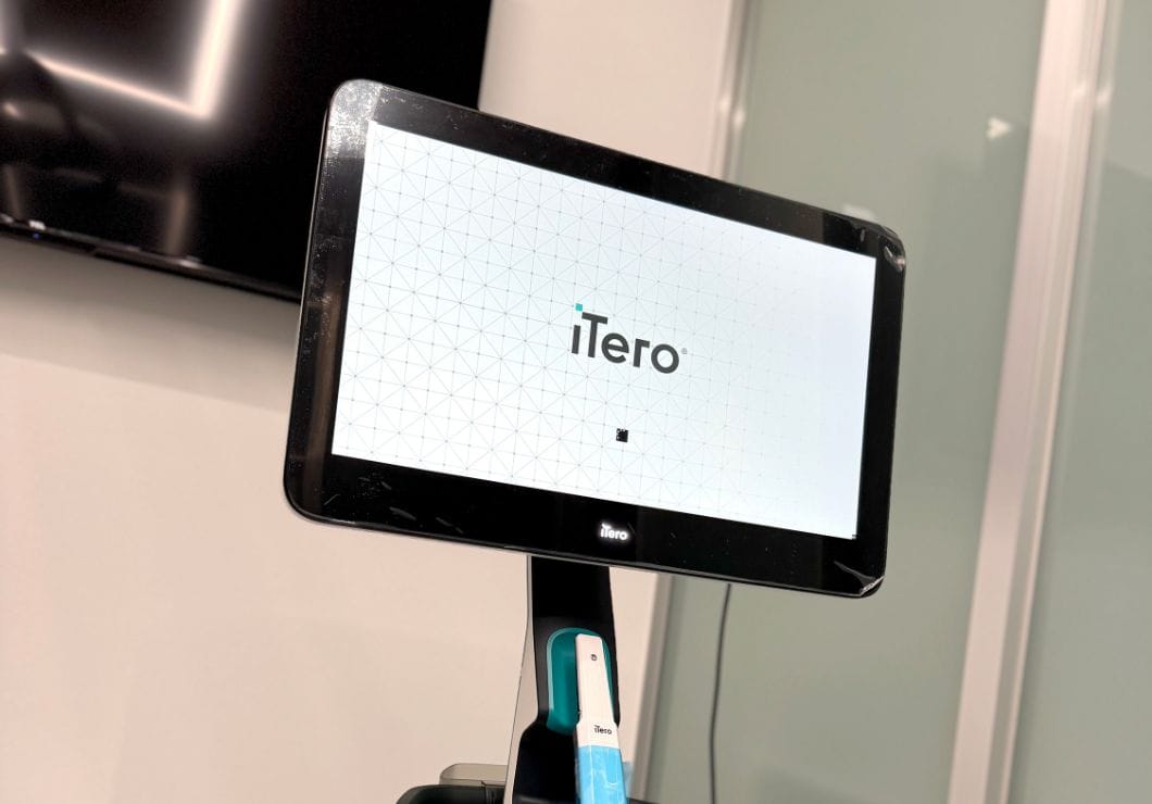 口腔内スキャナを備えています。マウスピース矯正装置のインビザラインだけでなく、インプラントの型取りや全体的な口腔内の把握と説明にも使える便利な機械です。